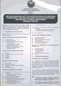 AUCHI POLYTHECNIC, {AUCHI-POLY} RELEASES HND ADMISSION FORM FOR 2021/2022 SESSION