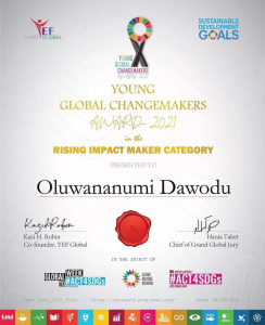 The Young Global Changemakers Award- 2021, was introduced by YEF Global to celebrate young individuals who inspire change through tangible action for the Sustainable Development Goals.
