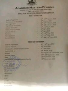 The Academic Matters Division of the Federal College of Horticulture, Dadin-Kowa, Gombe State, has officially released the approved academic calendar for the 2025/2026 academic session. This calendar is a very important guide for all students, as it contains all key dates for registration, lectures, examinations, breaks, and other academic activities.