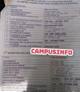 LAGOS STATE POLYTECHNIC, [LASPOTECH] RELEASES PART-TIME ACADEMIC CALENDER FOR THE 2021/2022 ACADEMIC SESSION - Campus News