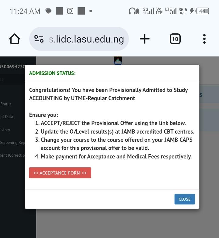 All candidates who participated in the LASU Post-UTME/Screening Exercise are advised to follow the steps below to confirm their admission status: