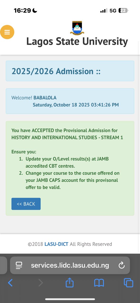 LAGOS STATE UNIVERSITY [LASU] RELEASES DIRECT ENTRY ADMISSION LIST ON SCHOOL PORTAL FOR THE 2025/2026 ACADEMIC SESSION