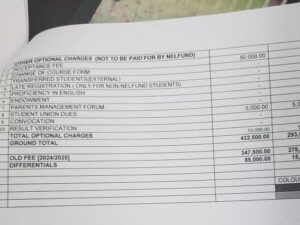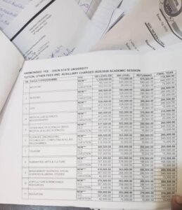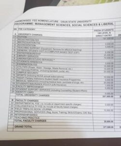 The Osun State University (UNIOSUN) has published its fee structure for newly admitted students for the 2025/2026 academic session, showing a graduated scale depending on programme specialization